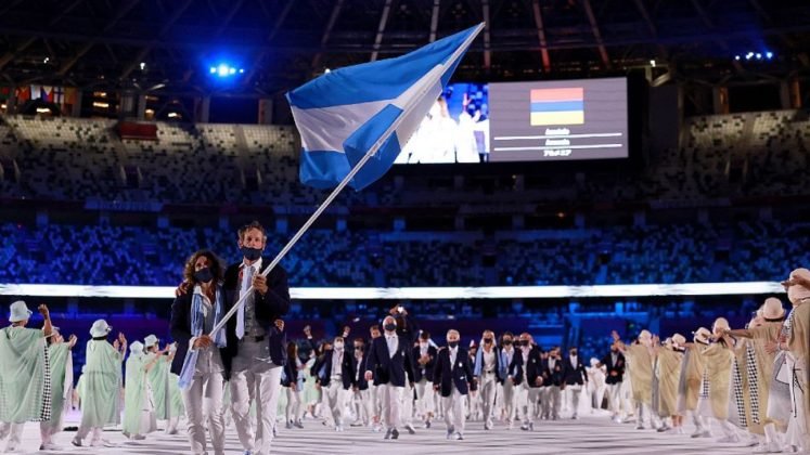 Tokio 2021: con cantito de cancha y pogo, la delegación argentina arrancó sonrisas en una ceremonia fría por la falta de público