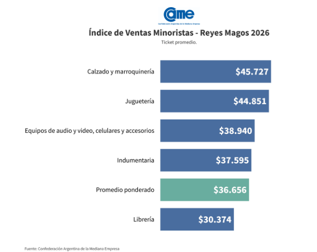 Las ventas del rubro registraron una caída interanual del 1,1% frente a Reyes 2025. El ticket promedio se ubicó en $ 45.727, por encima del promedio general, aunque sin lograr compensar la contracción en las cantidades vendidas.